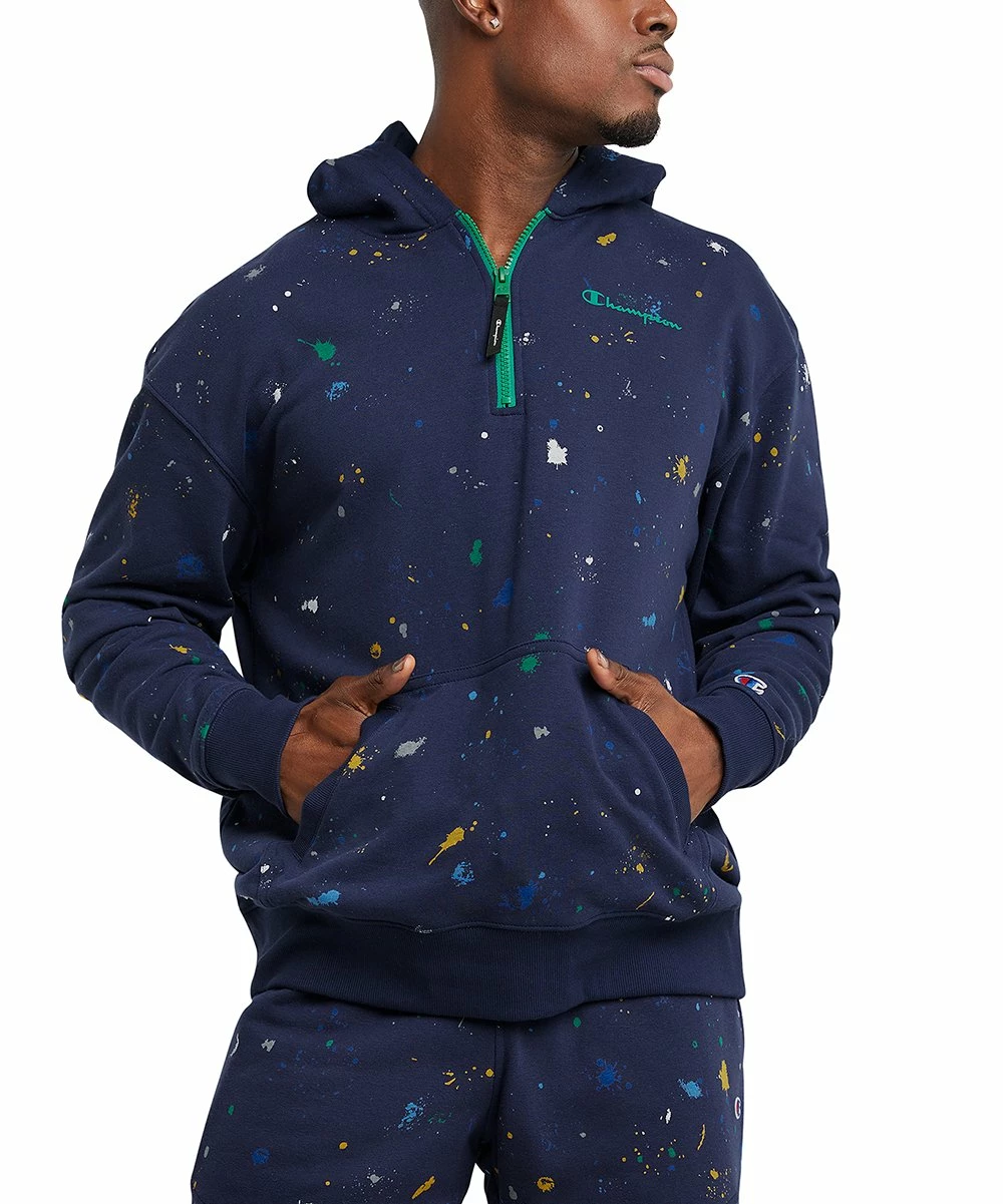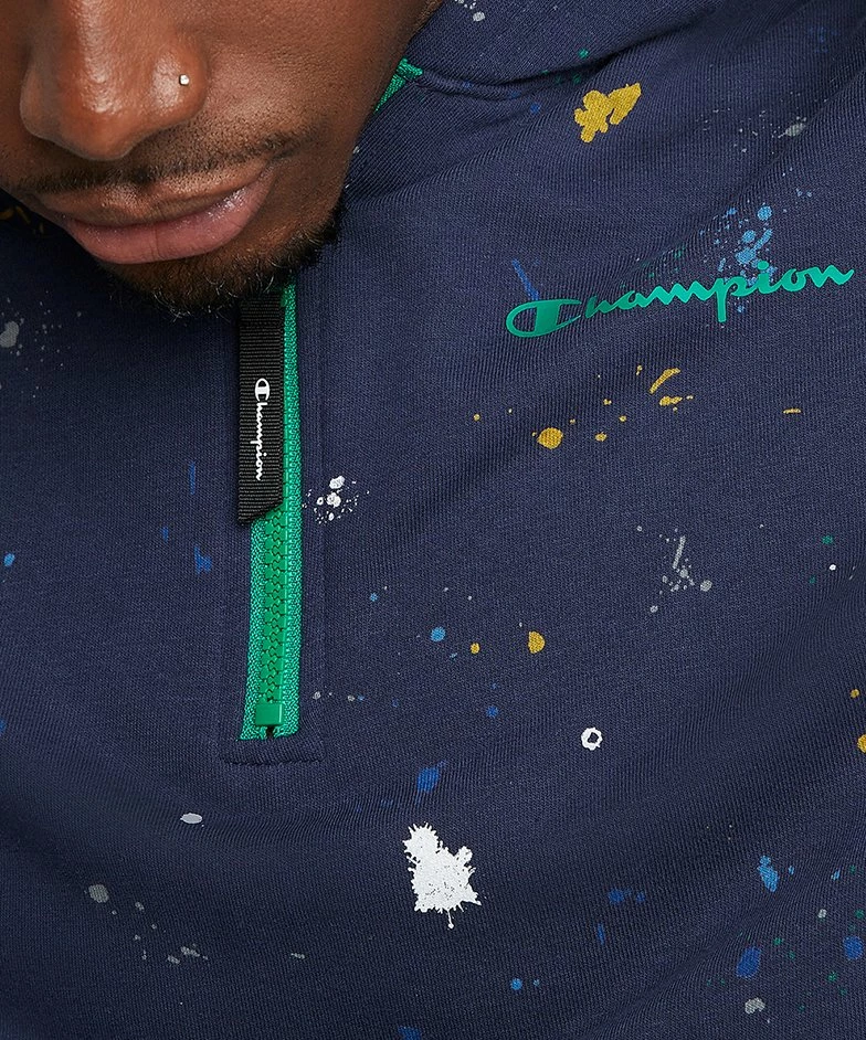 Quarter-zip hoodie featuring supersoft French terry knit, a kangaroo pocket, ribbed cuffs and a lay-flat waistband.