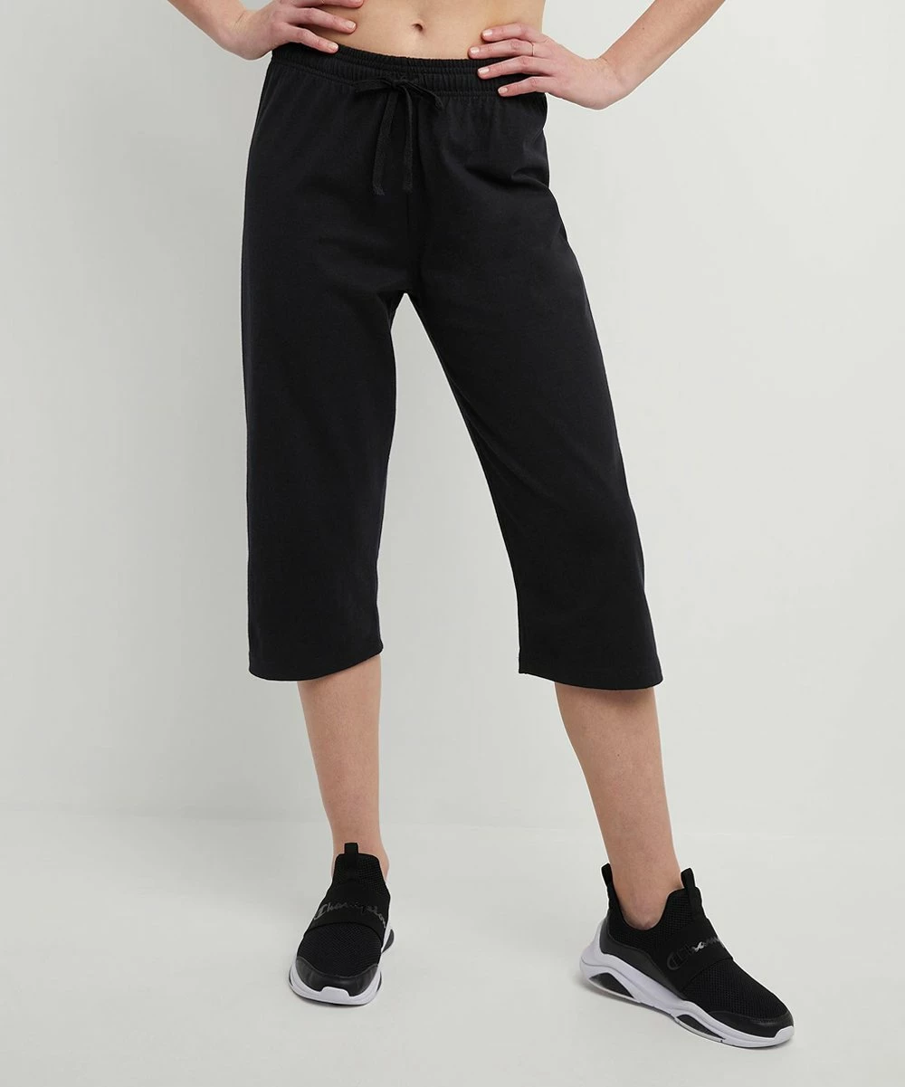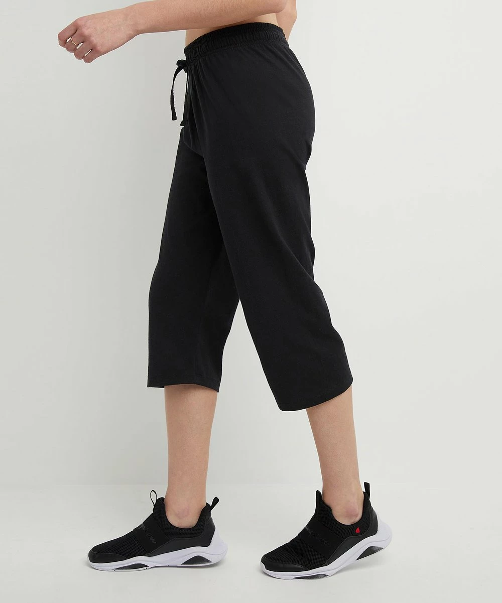 Light weight soft cotton-blend lounge capri pants featuring an drawstring elastic waist for added comfort.
