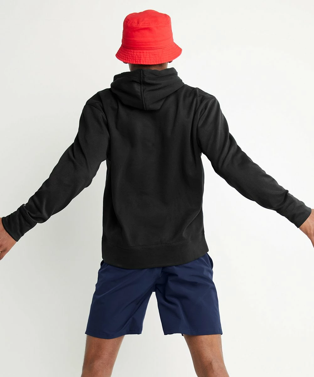 Standard-fit pullover with thumbholes, a pouch pocket, and branded front graphic and hood drawstrings. Made from moisture-wicking brushed material.