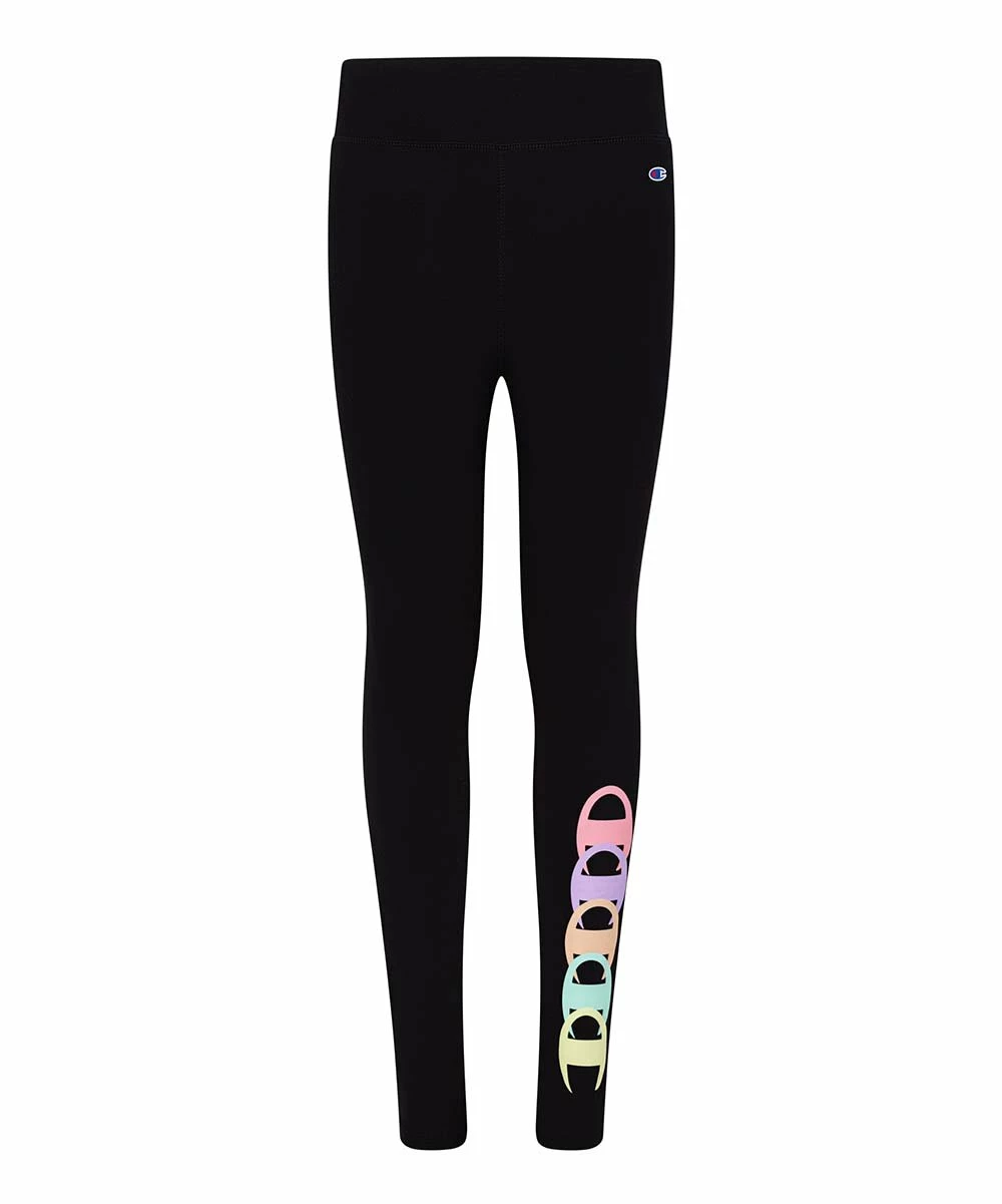 This pair of stretch-enhanced leggings feature a high waist and a colorful graphic down one leg.