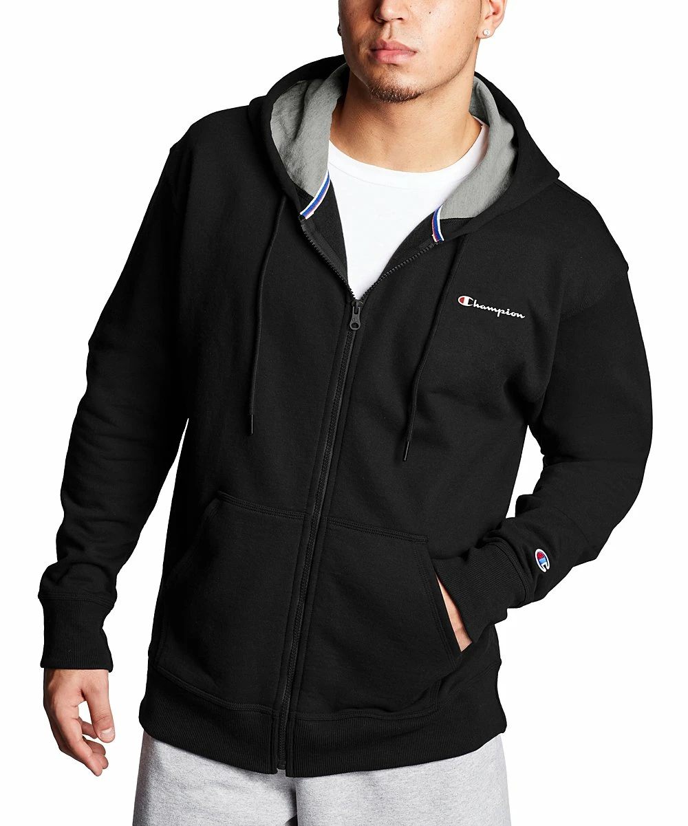 He can customize his comfort on a breezy day by layering on this soft cotton-blend hoodie that features a full-zip closure and convenient front pockets.