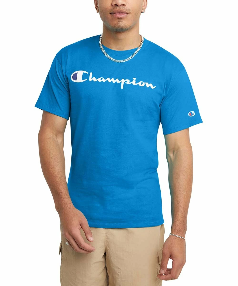 Lightweight crewneck tee crafted from ringspun cotton to keep him cool and comfy during athletic or casual wear. Signature brand logo for brand appeal.