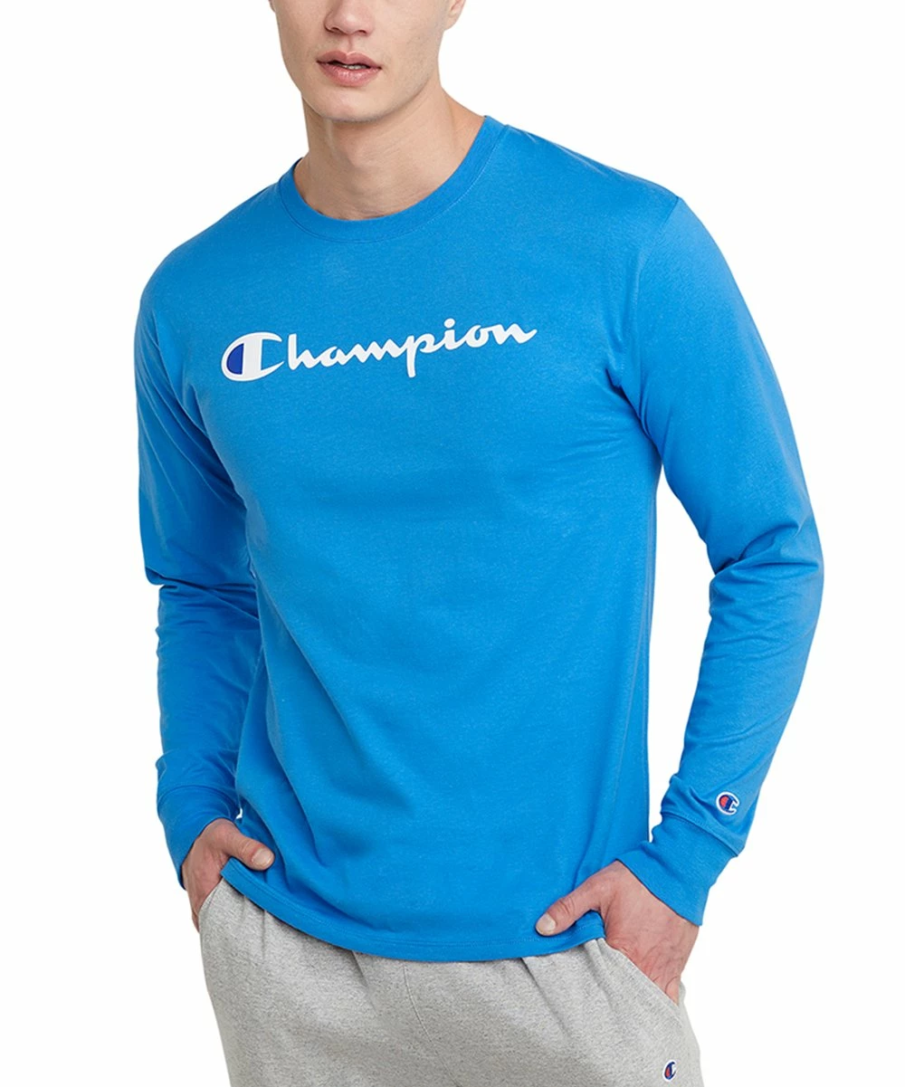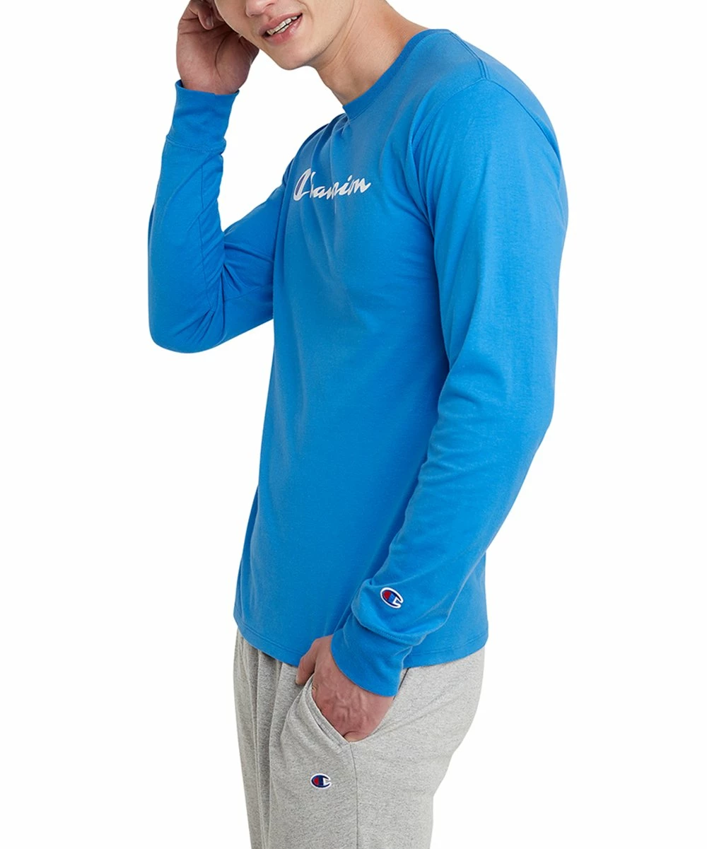 Lightweight cotton tee made with a ribbed crewneck, long sleeves and prominent logo graphic. Standard fit.