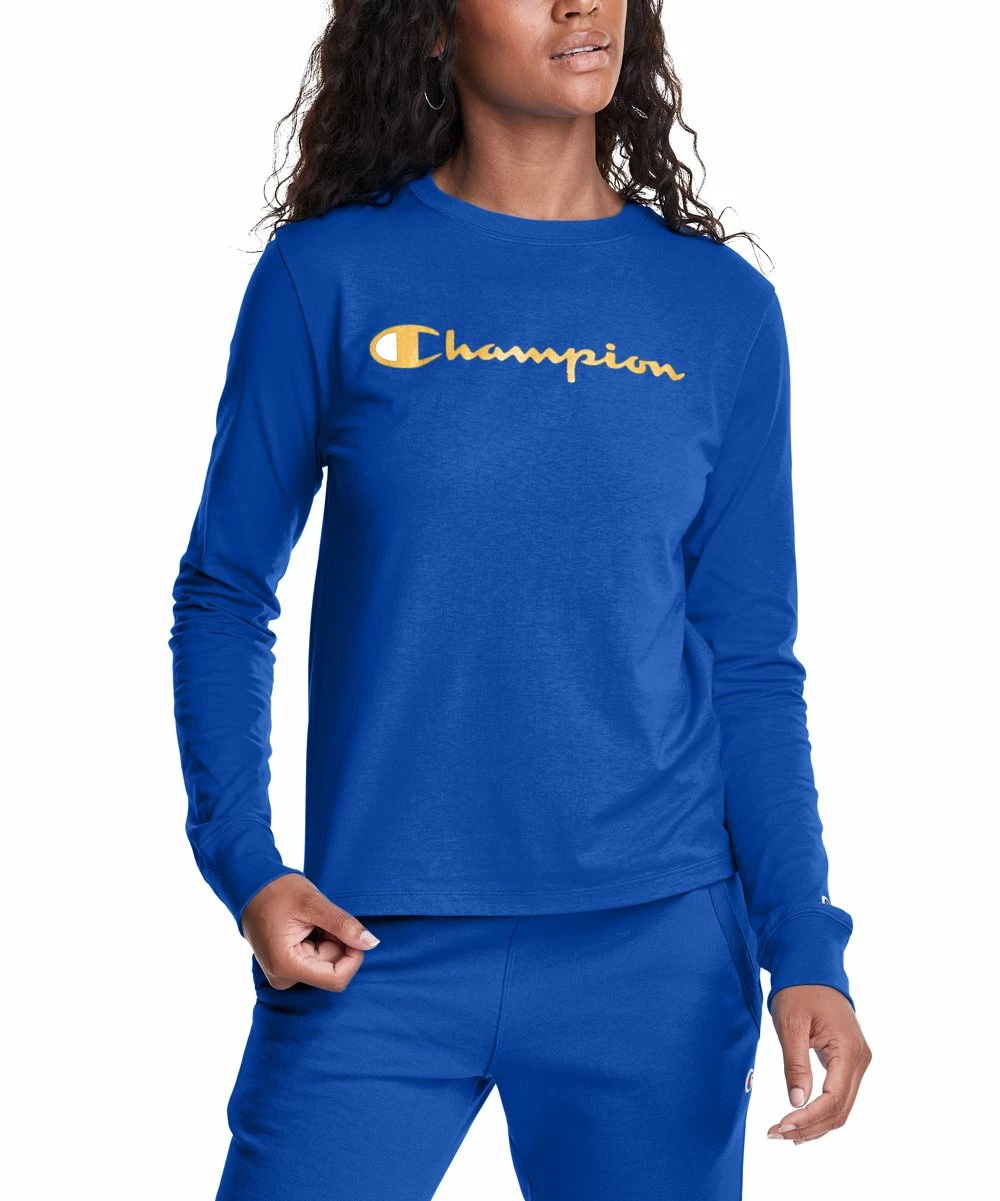 Keep it casual in this long sleeve tee featuring ribbed cuffs. Screenprint logo adds sporty appeal.