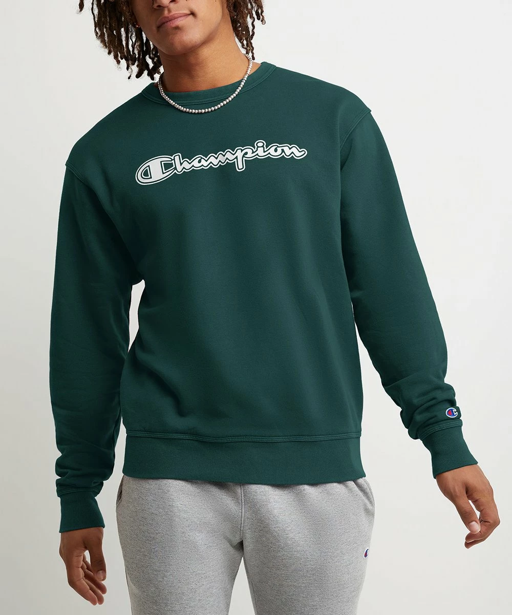Midweight fleece sweatshirt features wide ribbed cuffs, a lay-flat hem and a classic crewneck. Made from a supersoft cotton blend with a standard fit.