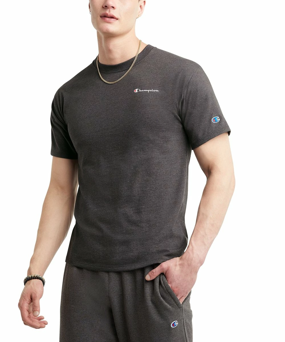 Tee featuring the iconic brand name on the left chest and a classic crewneck collar.