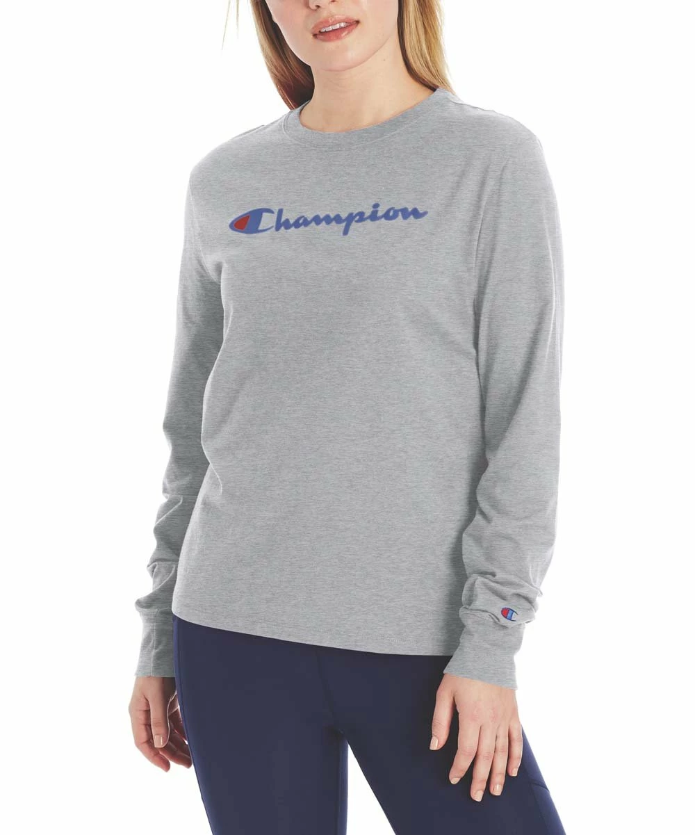 Complement your athleisure favorites with this versatile long-sleeved tee designed in a breathable cotton blend with a solid hue.