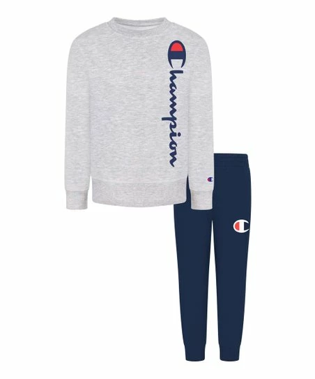 - Includes oxford heather fleece crewneck sweatshirt and navy fleece joggers (two pieces total)