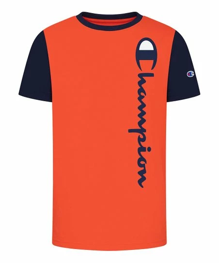 This kids’ crewneck tee features a classic signature script logo in vertical style and color-contrast sleeves for retro-casual appeal.