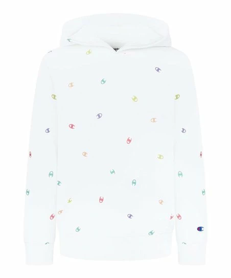This hoodie features a comfy cotton-blend fleece and a colorful allover print.