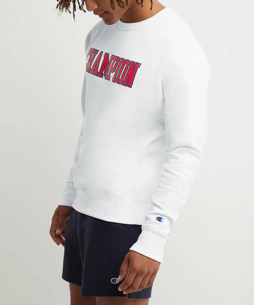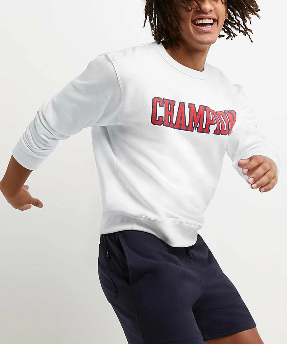 Cozy fleece sweatshirt featuring ribbed cuffs, a crewneck collar and a block letter logo appliqué.