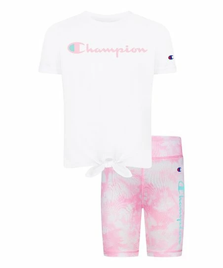 Tweens or kiddos dress for warm weather and workouts with this set, featuring a tie-front tee and tie-dye bike shorts.