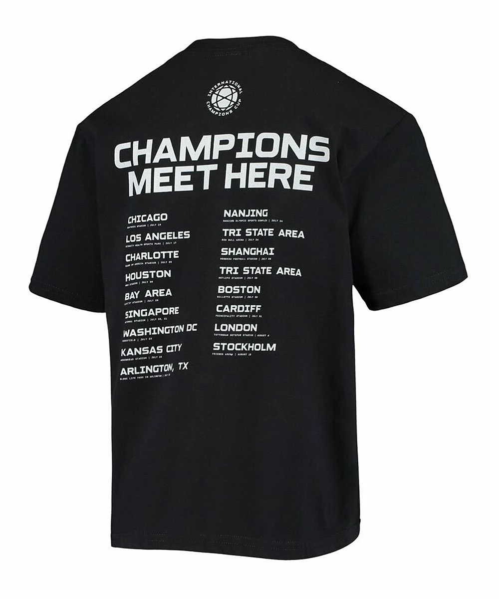 - Graphic text (back): Champions meet here (list of tournament locations and teams).