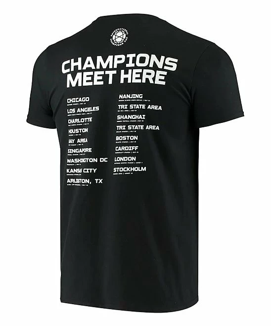 - Graphic text (back): Champions meet here (list of tournament locations and teams).