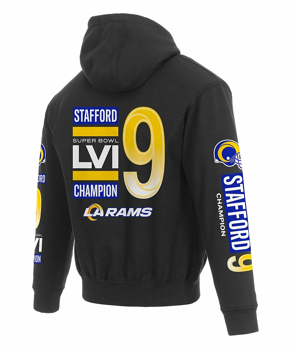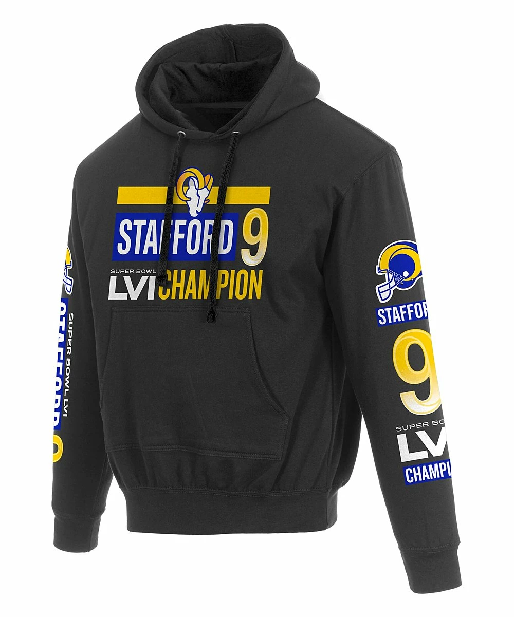 - Full graphic text (sleeve one): Stafford, nine, Super Bowl LVI Champion.