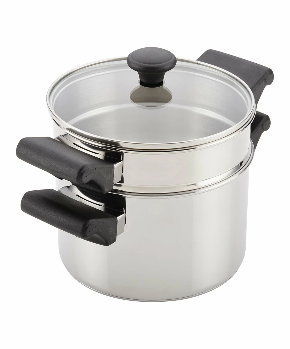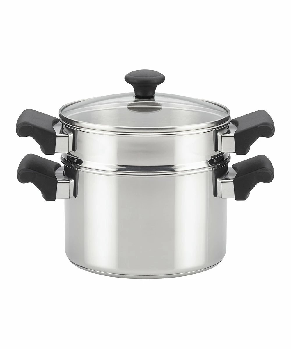Show off your champion culinary style in this sturdy stainless steel steamer featuring a two-tier design and convenient handles.