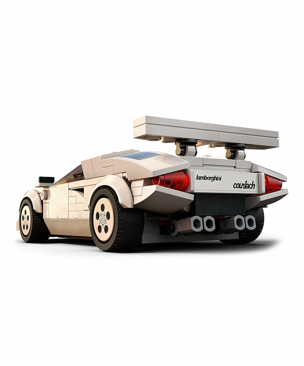 - Includes everything you need to build a white Lamborghini Countach and a Lamborghini-branded driver with a crash helmet, wig and wrench
